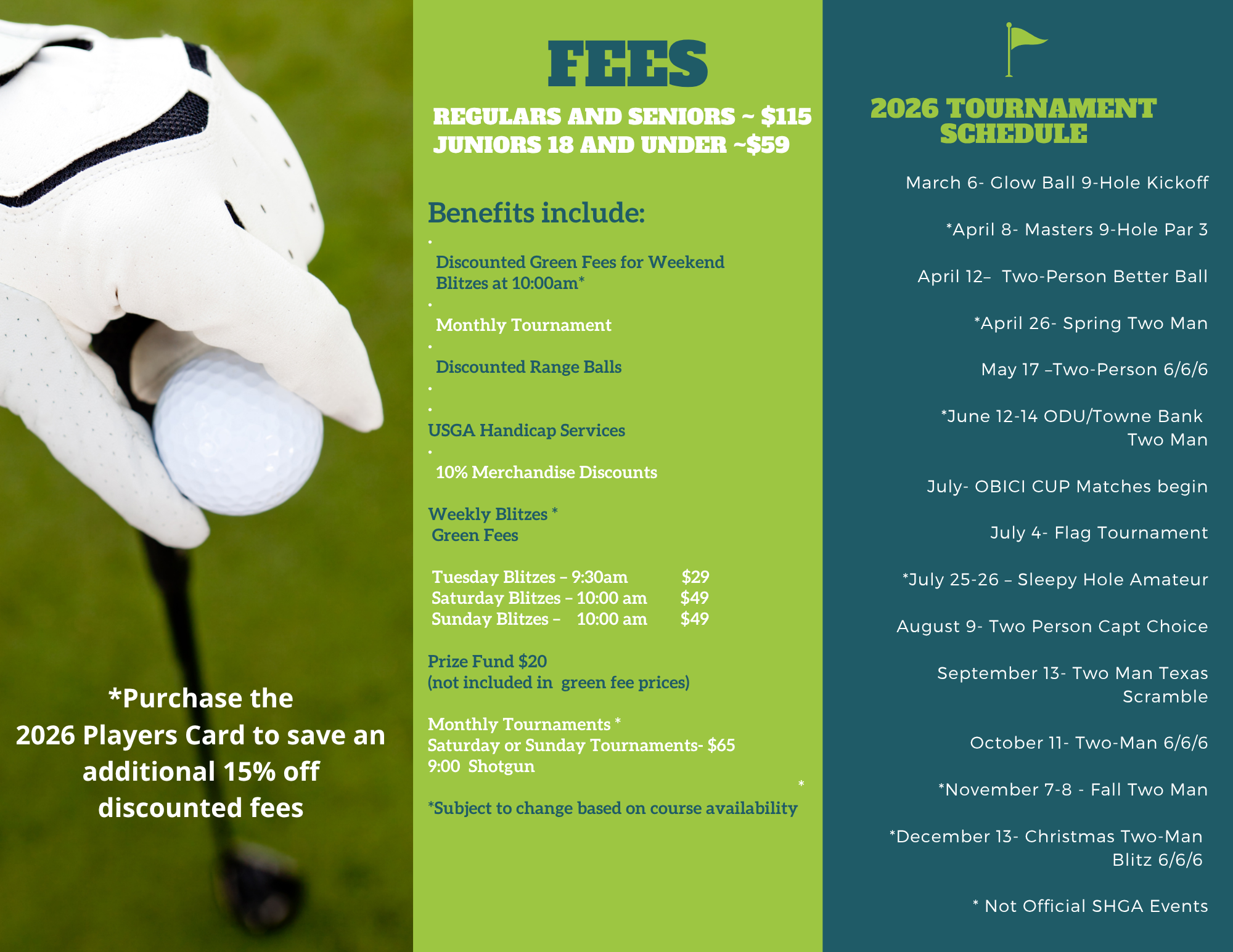For those looking to enjoy Sleepy Hole on a more regular basis, we offer three options that differ from your traditional membership at a golf course: The Sleepy Hole Golf Association, the Sleepy Hole Players Card, and a Range Pass.